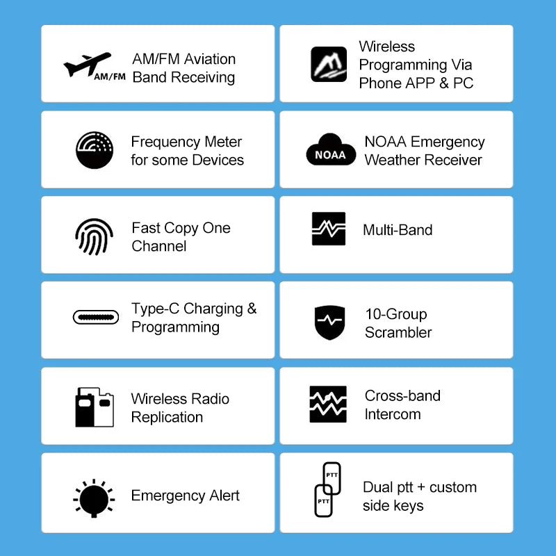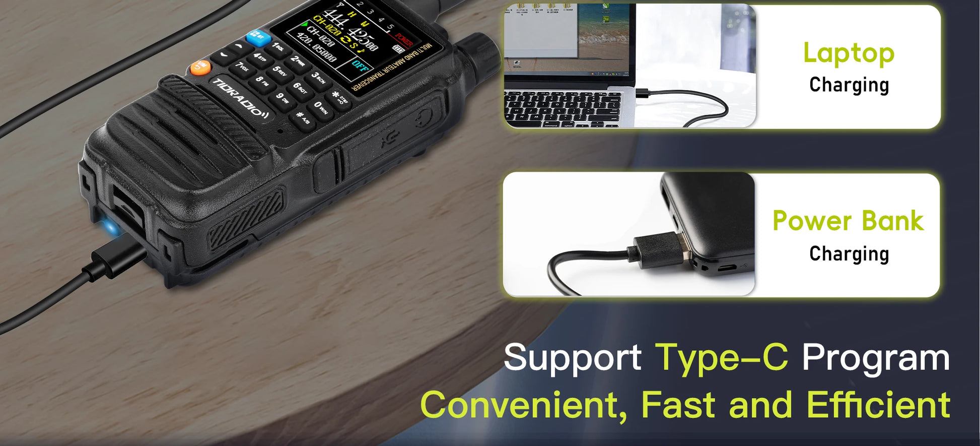 Walkie Talkie Phone APP Wireless Program HAM Air Band Long Range Radio USB Type-C Cable Prog/Charge