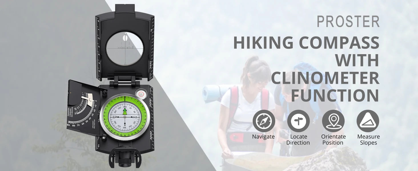 Waterproof Compass Hiking, Fluorescent Scale, Compass Navigation,Clinometer & Carry Bag Militar